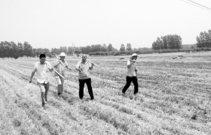 “今天是咱行政村夏收關(guān)鍵的掃尾階段,2000多畝小麥已經(jīng)收割了90%多,如果沒有大的問題,今天全村將順利完成今年的夏收任務(wù)。但是,擺在大家面前的搶種和安全防火任務(wù)還相當(dāng)繁重,今年的墑情比往年好,大家還要再加把勁兒,督促群眾盡快將秸稈清理干凈,力爭(zhēng)在三天內(nèi)全行政村實(shí)現(xiàn)麥?zhǔn)?、地凈、種結(jié)束?!壁w長領(lǐng)叮囑村干部。