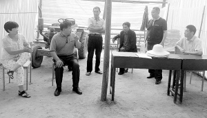 6:30:王隆集行政村黨支部書記趙長領(lǐng)、包村干部王海強(qiáng)召集其他四位行政村干部在設(shè)在村頭的“三夏”防火指揮部開會(huì)。