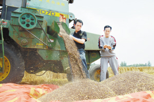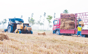 今年“三夏”,沈丘縣堅持做到進(jìn)地作業(yè)機(jī)械全部安裝秸稈粉碎還田裝置,一律執(zhí)行“低留茬、細(xì)粉碎”作業(yè),對不符合作業(yè)要求的機(jī)械,及時制止并督促就地整改,達(dá)不到標(biāo)準(zhǔn)要求的地塊,責(zé)成村級組織破茬耕翻,確保秸稈粉碎還田質(zhì)量。圖為付井鎮(zhèn)境內(nèi)一輛安裝秸稈粉碎還田裝置的聯(lián)合收割機(jī)正在田間作業(yè)。(肖飛 攝)