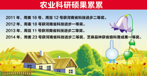 目前,全市農(nóng)業(yè)科研系統(tǒng)包括1個(gè)市級(jí)農(nóng)科院和5個(gè)縣級(jí)農(nóng)科所。全市農(nóng)科系統(tǒng)現(xiàn)有干部職工347名,其中專業(yè)技術(shù)人員161名,其中有研究員16名,副研究員29名,博士、碩士22名,享受國(guó)務(wù)院特殊津貼專家15名,省優(yōu)秀專家3名,省級(jí)學(xué)術(shù)技術(shù)帶頭人6名,市級(jí)優(yōu)秀專業(yè)技術(shù)人才24名。從以上數(shù)據(jù)可以看出,我市農(nóng)業(yè)科研人員中,專家和學(xué)科帶頭人數(shù)少,急缺博士、碩士等高層次農(nóng)業(yè)科技人才。即使在這樣的情況下,周口農(nóng)業(yè)科研人員也沒有懈怠,而是加倍付出,用自己的智慧和汗水,培育出了多個(gè)小麥和大豆新品種,獲得了一項(xiàng)又一項(xiàng)科技成果獎(jiǎng)。五年來(lái),市農(nóng)科院獲得的河南省科技進(jìn)步獎(jiǎng)數(shù)量穩(wěn)居河南省地市農(nóng)科院前列,主要是集中在小麥育種和大豆育種上。這主要是與我市小麥、大豆育種居國(guó)內(nèi)領(lǐng)先水平?jīng)Q定的。特別是小麥育種已成為全國(guó)優(yōu)勢(shì)學(xué)科,相繼育成30多個(gè)小麥新品種,其中12個(gè)通過(guò)國(guó)家審定,13個(gè)通過(guò)河南省審定,創(chuàng)育了享譽(yù)全國(guó)的“周麥”品牌,市場(chǎng)占有率高、美譽(yù)度好。2015年周麥系列品種在黃淮麥區(qū)累計(jì)推廣面積近3000萬(wàn)畝,其中在河南省推廣2500萬(wàn)畝,占全省小麥種植面積的28%,占周口小麥種植面積的75%,新增經(jīng)濟(jì)效益20多億元,為全省、全市小麥連年增產(chǎn)做出了突出貢獻(xiàn)。
