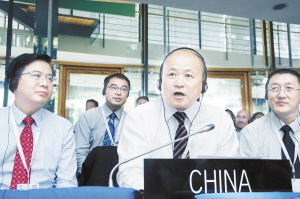 中國土司遺址入選世界遺產名錄 7月4日,在德國波恩舉行的第39屆聯合國教科文組織世界遺產委員會會議(世界遺產大會)上,中國國家文物局副局長童明康(前中)代表中國政府發(fā)言。中國土司遺址4日在第39屆聯合國教科文組織世界遺產委員會會議(世界遺產大會)上獲準列入世界遺產名錄,成為中國第48處世界遺產。新華社發(fā)
