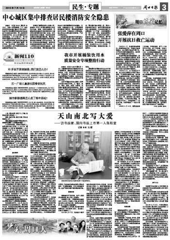 當(dāng)記者在北京見到張柱堂時,他的容貌和記者的想象差別不大。從外表看,他就是位普通而慈祥的老人,見了誰都笑呵呵的,即便在新疆生活了50年,張口還是地道流利的家鄉(xiāng)話。見到家鄉(xiāng)人,張柱堂激動的心情溢于言表,他拿出自己做的《周口日報》剪貼本讓我們翻閱,談起家鄉(xiāng)近年來取得的可喜變化,他都能一件一件清晰準(zhǔn)確地道來。此刻我方知,在老人平靜的外表下,蘊(yùn)藏著的是怎樣熾熱的家鄉(xiāng)情。