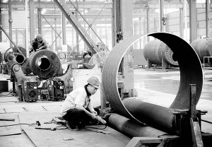 近年來,太康縣裝備制造園區(qū)被省工業(yè)和信息化廳評為特色裝備(工業(yè)鍋爐)制造園區(qū),成為中部地區(qū)最大的鍋爐壓力容器生產(chǎn)基地。全縣現(xiàn)有鍋爐壓力容器制造企業(yè)14家,其中A級鍋爐企業(yè)5家,年生產(chǎn)能力2.65萬蒸噸以上。圖為該縣四通鍋爐廠生產(chǎn)車間一角。(記者 沈湛 攝)