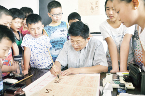 中國書協(xié)會(huì)員、市書協(xié)副主席、培訓(xùn)中心書法主講辛廷信為學(xué)生示范。