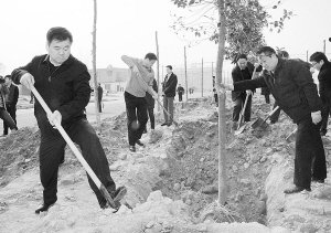 當(dāng)日9時(shí)20分,徐光、劉繼標(biāo)、李洪民、穆仁先等一來(lái)到植樹(shù)地點(diǎn),就拿起鐵鍬,與干部群眾一起投入到歡快的勞動(dòng)中。初春時(shí)節(jié),乍暖還寒,陽(yáng)光中還透著絲絲寒意,卻絲毫沒(méi)擋住人們植樹(shù)添綠的熱情。徐光、劉繼標(biāo)等市領(lǐng)導(dǎo)熟練地拿起鐵鍬,或兩人一組,或三五人搭檔,齊心協(xié)力,互相配合,一起扶苗、培土、踩實(shí)、澆水,道道工序認(rèn)真細(xì)致。經(jīng)過(guò)一番熱火朝天的勞動(dòng),一棵棵法桐、大葉女貞迎風(fēng)挺立、舒展新綠,把大慶北路裝點(diǎn)得生機(jī)盎然。徐光、劉繼標(biāo)等市領(lǐng)導(dǎo)一邊興致勃勃地栽樹(shù),一邊向有關(guān)人員詳細(xì)詢(xún)問(wèn)苗木成活率、樹(shù)木管護(hù)等情況,交流加強(qiáng)生態(tài)建設(shè)、改善生態(tài)環(huán)境的看法,大家臉上都洋溢著勞動(dòng)的喜悅。