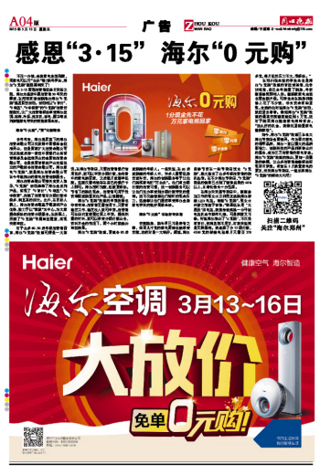 感恩“3·15” 海爾“0元購”
